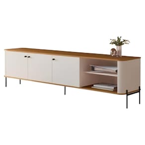Estrutura robusta com pés e puxadores em metal, garantindo resistência e um toque de elegância.Base e topo em MDF de 15mm, conferindo durabilidade e um acabamento de alta qualidade.Com 3 portas e 1 prateleira, oferece amplo espaço para armazenamento e organização dos seus dispositivos.Suporta TVs de até 70 polegadas, proporcionando versatilidade para diferentes modelos de televisores.