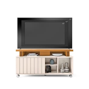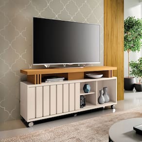 O Rack para Sala Bancada de TV 70 Pol 180 cm Sora 1.3 Off White/Cinamomo é ideal para casas ou apartamentos que precisam de total otimização do espaço e um local elegante, prático e bem estruturado. Seu design moderno e sofisticado conta com um detalhe elegante ripado na porta, proporcionando um charme extra à peça. A porta ampla e o espaço interno generoso são perfeitos para manter tudo organizado. E a prateleira é uma excelente forma de exibir itens especiais, como decoração ou coleções pessoais. O tampo de 40mm dá uma sensação de robustez e qualidade, além de ser perfeito para suportar uma TV de até 50 polegadas. Isso garante um visual moderno e funcional na sala. E os rodízios são um detalhe incrível, facilitando muito na hora de mover o rack para limpar ou reorganizar o ambiente sem esforço. Produzido em MDP e MDF que além de garantir uma estrutura sólida, apresenta um design único e diferenciado. Perfeito né? Adquira já o seu!
