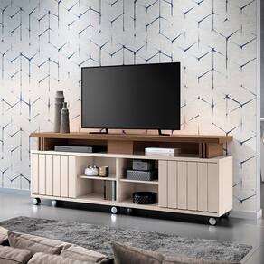 O Rack para Sala Bancada de TV 70 Pol 180 cm Sora 1.8 é ideal para casas ou apartamentos que precisam de total otimização do espaço e um local elegante, prático e bem estruturado. Seu design moderno e sofisticado conta com um detalhe elegante ripado na porta, proporcionando um charme extra à peça. A porta ampla e o espaço interno generoso são perfeitos para manter tudo organizado. E a prateleira é uma excelente forma de exibir itens especiais, como decoração ou coleções pessoais. O tampo de 40mm dá uma sensação de robustez e qualidade, além de ser perfeito para suportar uma TV de até 50 polegadas. Isso garante um visual moderno e funcional na sala. E os rodízios são um detalhe incrível, facilitando muito na hora de mover o rack para limpar ou reorganizar o ambiente sem esforço. Produzido em MDP e MDF que além de garantir uma estrutura sólida, apresenta um design único e diferenciado. Perfeito né? Adquira já o seu!