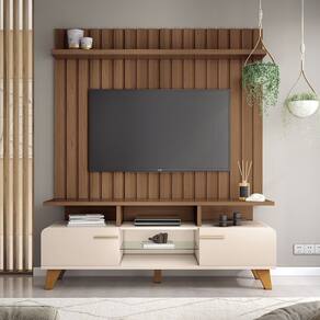 O Rack para Sala de TV 70 Pol 200 cm Zuri 1.6 é a escolha perfeita para quem busca praticidade e durabilidade. Os cantos arredondados realmente fazem toda a diferença, trazendo um toque todo especial ao design do rack. E a base ampla e resistente, capaz de acomodar uma TV de até 60 polegadas, mostra que além de bonito, o móvel é super funcional, proporcionando a estabilidade e o espaço necessário para o entretenimento. A prateleira de vidro de 6mm é um toque de sofisticação e leveza, permitindo que os eletrônicos fiquem organizados de forma elegante. As portas basculantes com cobertura de gás são uma excelente escolha, pois garantem uma abertura e fechamento suave e seguro, sem risco de danificar o movimento. Os puxadores metálicos em tom dourado são um detalhe de luxo que realmente eleva o visual do rack. Os pés de madeira sofisticados com acabamento envernizado trazem um toque de elegância natural e são essenciais para garantir a estabilidade e durabilidade do rack. A escolha de MDP e MDF de alta qualidade, além de ser ecologicamente correto, demonstra o compromisso com o meio ambiente e com um produto sustentável. Tenho certeza que esse tipo de detalhe faz toda a diferença na sua escolha. Aproveite!