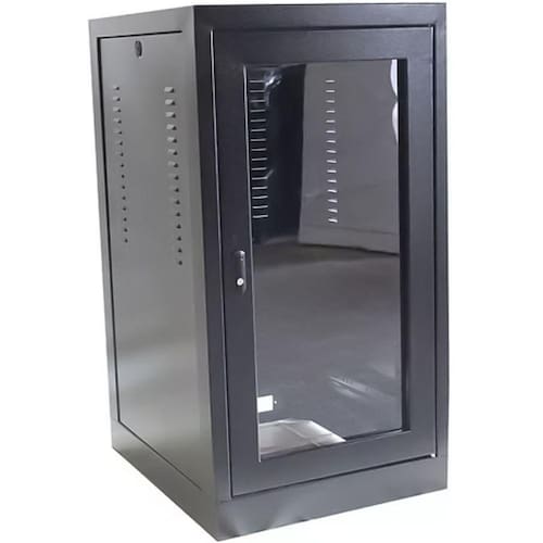 - Estruturas confeccionadas e aço soldado. - Permite a passagem de cabos tanto na parte superior quanto na parte inferior. - Fechamentos laterais e traseiras totalmente removíveis através de parafusos internos e fechos fenda tipo lingueta. - Venezianas de ventilação laterais. - Fechamento superior preparado com perfuração para kit ventilação de 2 a 6 coolers conforme sua profundidade. - Porta frontal fabricada em aço com visor em acrílico com fechos móveis e fechadura com segredo único. - Tratamento do aço com anticorrosivo e desengraxante biodegradável. - Pintura eletrostática a pó epóxi texturizada.