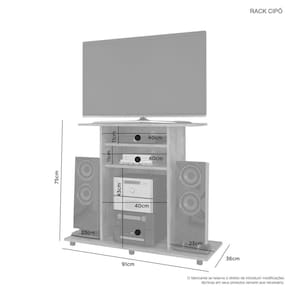 Rack para TV 32 até Polegadas Cipo JCM MóveisCompacto e prático são as principais característica do Rack Cipo. Produzido em mdp 15mm, com espaço para eletrônicos e som e capacidade para tv até 32 é o produto ideal para quem tem pouco espaço e precisa organizar sua sala de estar.Dimensões RackAltura: 75 cmLargura: 91 cmProfundidade: 36 cmCaracterísticas:Modelo: CipóAmbiente: Sala de Estar Noronha/OffEscala de Brilho: FoscoPintura: UVMaterial Principal: MDPPossui Prateleira: SimQuantidade de Prateleira: 02Material da Prateleira: MDPCor da Prateleira: OffEscala de Brilho da Prateleira: BrilhoPossui Pés: SimMaterial dos Pés: PVCIdeal para TV'S até: 32 PolegadasEspaço para TV: 725mm x Livre (LxA)
