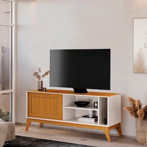 Prático e sofisticado, este rack em MDP/MDF conta com porta deslizante, prateleira interna e suporte para TVs de até 50". Com medidas compactas (58cm x 136cm x 37cm) e pés em MDF que asseguram estabilidade, é a escolha ideal para ambientes funcionais e elegantes. Produto Montado: Sim Acabamento: Pintura UV Acabamento da Porta: Pintura UV Acabamento da Prateleira: Pintura UV Ambiente Principal: Sala de Estar codigo_ean: 7900288201881 Complexidade da Montagem: Média: pode ser montado por mais de uma pessoa e/ou necessite de maior conhecimento para montagem Cor: Off White/ Cedro Cor do Produto: Off White/ Cedro Cor Interna: Off White Escala de Brilho: Brilhante Escala de Brilho da Porta: Fosco Escala de Brilho da Prateleira: Fosco Espessura do Tampo: 12 mm Ideal para TVs até (Polegadas): 50 Itens Inclusos: 1 Rack, Kit Ferragens e Manual de Montagem Linha ou Coleção: Aruba Manual de Montagem e Instalação: https://product-hub-prd.madeiramadeira.com.br/657908725/documents/cc564467-be69-4a7e-806e-e212fe05eac83097204610717534436839358.pdf Marca: EDN Móveis Material da Porta: MDF Material da Prateleira: MDP Material dos Pés: MDF Material Principal: MDF/MDP Necessita Montagem: Sim Origem do Produto: Nacional Peso: 21,4 kg Peso Máximo por Prateleira: 5 kg Possui Adega: Não Possui Espelho: Não Possui iluminação: Não Possui Passa Cabos: Sim Possui Pés: 04 Possui Prateleiras: Sim Possui Vidro: Não Quantidade de Nichos: 03 Recomendações de Uso, Manutenção e Limpeza: Limpar com pano macio e levemente umedecido com água. Evitar produtos abrasivos, álcool, solventes ou esponjas ásperas. Secar imediatamente após a limpeza. Sapatas Niveladoras: Sim Sistema de Montagem: Parafusos, cavilhas e minifix Tipo de Porta: Correr Tipo de Puxador da Porta: Embutido