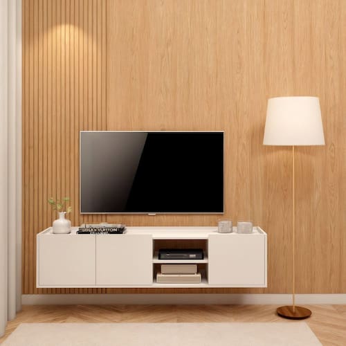 Com altura de 31 cm, este móvel não apenas otimiza o espaço, mas também adiciona um toque sofisticado ao ambiente. O manual de montagem incluído facilita a instalação, tornando o processo acessível até mesmo para os menos experientes. Opte pelo Rack Para Sala TV Byhouse e valorize a decoração da sua sala com um móvel funcional e de bom gosto. Produto Montado: Sim Acabamento: BP Acabamento da Porta: BP Acabamento da Prateleira: BP Ambiente Principal: Sala de Estar codigo_ean: 7900288361240 Complexidade da Montagem: Média: pode ser montado por mais de uma pessoa e/ou necessite de maior conhecimento para montagem Cor: Branco Cor da Porta: Branco Cor do Produto: Branco Escala de Brilho: Fosco Escala de Brilho da Porta: Fosco Escala de Brilho da Prateleira: Fosco Espessura do Tampo: 12 mm Ideal para TVs até (Polegadas): 52 Itens Inclusos: 1 Rack, Manual de Montagem e Kit Ferragens Linha ou Coleção: Rack Manual de Montagem e Instalação: https://product-hub-prd.madeiramadeira.com.br/306457453/documents/d57371c5-8c0b-4480-a535-6bd41bcb395b3453393686117742949096472.pdf Marca: BYHOUSE Material da Porta: MDF/MDP Material da Prateleira: MDF/MDP Material Principal: MDF/MDP Necessita Montagem: Sim Origem do Produto: Nacional Peso: 16 kg Peso Máximo por Prateleira: 5 kg Possui Espelho: Não Possui iluminação: Não Possui Passa Cabos: Sim Possui Pés: Suspenso Possui Portas: Sim Possui Prateleiras: Sim Possui Vidro: Não Recomendações de Uso, Manutenção e Limpeza: Pano limpo e água Sistema de Montagem: parafusos e cavilhas Tipo de Porta: Abrir Tipo de Puxador da Porta: Embutido Marca: Não Informado