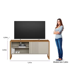 O Rack Gold chegou para inovar o seu ambiente, com uma porta de correr em detalhes frisados e puxador embutido. Foi projetado para TVs de até 55 polegadas, possui prateleira para acomodar objetos decorativos e aparelhos eletrônicos e ainda pés laterais com moldura proporcionando um design moderno para sua sala.Acompanha também um pé opcional para reforço central. Características: Espaço para TV até 55 polegadas no tampoEspaço útil no tampo: 1,36m x 0,00m x 0,36m (L x A x P)Material: Composto MDP/MDFTampo: Em MDP de 15mmPorta : 1 porta de correr em MDF 15mmPrateleira: 1 prateleira MDP 15mm Pés : 3 Pés em MDF com altura de 18cmPuxador : 1 puxador em MDF embutido Dimensões do produto montado : Altura: 65 cm Largura: 141 cm Profundidade: 36 cm Peso do produto montado : 24 KgGarantia do Fornecedor: 3 meses.