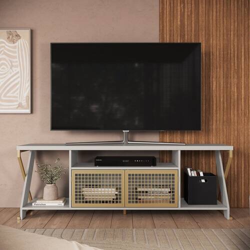 Sua sala de estar ainda melhor. O Rack P1033 da Placa & Ponto possui detalhes muito lindos! Sua estrutura e portas no Estilo Industrial, o tornam elegante e diferenciado. Essa sua escolha é perfeita para compor um ambiente agradável e moderno. seu tampo permite uma TV de até 60”. Este Rack é a escolha perfeita para o seu cinema em casa! Produto Montado: Sim Acabamento: Finish Foil Acabamento da Porta: Pintura Ambiente Principal: Sala de Estar codigo_ean: 7900288196187 Complexidade da Montagem: Média: pode ser montado por mais de uma pessoa e/ou necessite de maior conhecimento para montagem Cor: Arena / Dourado Cor da Porta: Off White Cor do Produto: Arena / Dourado Cor Flex: Não Escala de Brilho: Fosco Escala de Brilho da Porta: Fosco Espessura do Tampo: 30 mm Ideal para TVs até (Polegadas): 60 Itens Inclusos: 1 Rack, Kit Ferragens e Manual de Montagem Linha ou Coleção: P1033 Manual de Montagem e Instalação: https://product-hub-prd.madeiramadeira.com.br/852415441/documents/28730d77-eec2-4fb2-b59e-307aebc8ce6392442790522517286480220404.pdf Marca: Placa e Ponto Material da Porta: Metal Material Principal: MDP Modelo de Porta: Porta Telada Montagem Flex: Não Necessita Montagem: Sim Origem do Produto: Nacional Peso: 33 kg Possui Adega: Não Possui Espelho: Não Possui iluminação: Não Possui Passa Cabos: Não Possui Pés: Não Possui Portas: Sim Possui Prateleiras: Não Possui Vidro: Não Recomendações de Uso, Manutenção e Limpeza: Para a limpeza do móvel utilizar uma flanela seca. Sistema de Montagem: Parafusos, cavilhas e minifix Tipo de Dobradiça/Corrediça da Porta: Metálica Tipo de Porta: Bater Tipo de Puxador da Porta: Embutido