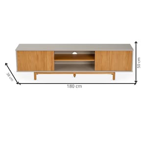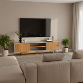 O rack Rischio 180cm para TV é a combinação perfeita entre funcionalidade e design moderno. Tendo uma estrutura robusta feito de madeira maciça e mdf laqueado com acabamento sofisticado, ele conta com portas com reforço interno e dobradiças com fechamento suave, que garantem mais durabilidade e praticidade no uso diário. Seu espaço interno é amplo e bem distribuído, com prateleira central, ideal para eletrônicos, e passa-fios para manter os cabos organizados. Além disso, possui sapatas niveladoras e um pé central de reforço, oferecendo maior estabilidade, mesmo em pisos irregulares. Um móvel funcional, elegante e pronto para valorizar sua sala! Produto Montado: Sim Acabamento: Pintura UV Acabamento da Porta: Pintura UV Acabamento da Prateleira: Pintura UV Acabamento dos Pés: Pintura Altura dos Pés: 14 cm Altura Máxima dos Pés: 14.0000 Ambiente Principal: Sala de Estar codigo_ean: 7900288247421 Complexidade da Montagem: Média: pode ser montado por mais de uma pessoa e/ou necessite de maior conhecimento para montagem Cor: Off White/Mel Cor do Produto: Off White/Mel Cor Interna: Off White Escala de Brilho: Semi-Brilho Escala de Brilho da Porta: Semi-Brilho Escala de Brilho da Prateleira: Super-Brilho Espessura do Tampo: 18 mm Estilo do Pé: Palito Ideal para TVs até (Polegadas): 65 Itens Inclusos: 1 Rack, Kit Ferragens e Manual de Montagem Linha ou Coleção: De Lavie Manual de Montagem e Instalação: https://product-hub-prd.madeiramadeira.com.br/171684747/documents/c1441572-c685-4d13-8ed7-6e75821221e73253516576617593430002839.pdf Marca: Treboll Material da Porta: Madeira Maciça Material da Prateleira: Madeira Maciça Material do Puxador da Porta: Madeira Maciça Material dos Pés: Madeira Maciça Material Principal: MDF Modelo de Porta: Porta Ripada Necessita Montagem: Sim Origem do Produto: Nacional Peso: 29 kg Peso Máximo por Prateleira: 12 kg Possui Adega: Não Possui Espelho: Não Possui iluminação: Não Possui Passa Cabos: Sim Possui Pés: 05 Possui Portas: Sim Possui Prateleiras: Sim Possui Vidro: Não Recomendações de Uso, Manutenção e Limpeza: Limpe com flanela seca. Nunca utilize solventes, álcool, acetona, thinner, lustra móveis, abrasivos ou qualquer outro produto que contenha soda ou ácido para limpar ou tirar manchas. Sapatas Niveladoras: Sim Sistema de Montagem: parafusos, cavilhas Tipo de Dobradiça/Corrediça da Porta: Metálica Tipo de Madeira Maciça da Porta: Pinus Tipo de Madeira Maciça da Prateleira: Pinus Tipo de Madeira Maciça do Puxador da Porta: Pinus Tipo de Madeira Maciça dos Pés: Pinus Tipo de Porta: Bater Tipo de Puxador da Porta: Embutido