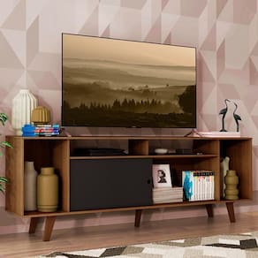 - O acabamento do rack e dos pés é no padrão amadeirado Rustic