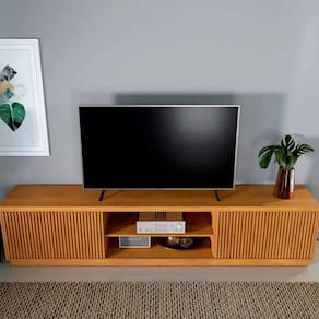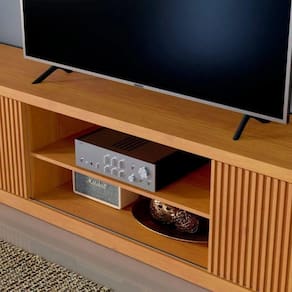 Rack Para Tv 70 Ripado 2 Portas De Correr Siena Mavaular le Rack para Tv 70 Ripado 2 Portas de Correr Siena Mavaular O rack Siena e uma opcao linda e super versatil que traz portas com detalhe ripado e prateleiras centrais, alem de amplo espaco no tampo. Portas de correr ripadas que destacam por sua beleza, voce pode escolher o modelo com uma ou com duas portas Pintura de excelente acabamento e belissimo desenho de madeira Comporta TV de ate 70