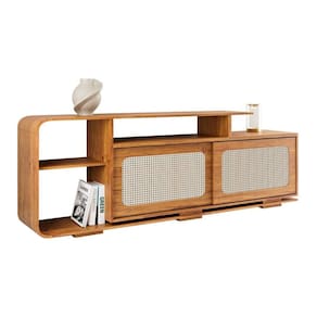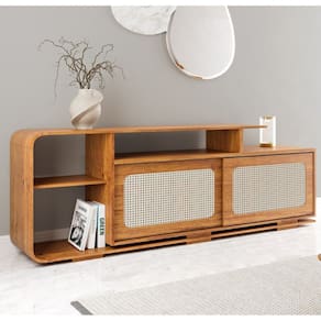 O Rack Santorini é a escolha perfeita para quem deseja unir funcionalidade e estilo na sala de estar, projetado para suportar TVs de até 75 polegadas, ele valoriza o ambiente com elegância. Seu design vintage se destaca pelas laterais arredondadas, que dão um charme diferenciado, as duas portas deslizantes, em palha natural, trazem sofisticação e um toque artesanal. Conta com nichos bem distribuídos, ideais para organizar aparelhos eletrônicos e objetos decorativos. A estrutura em MDP/MDF combina praticidade e resistência, garantindo longa durabilidade ao móvel. O sistema de portas deslizantes facilita o uso no dia a dia, ocupando menos espaço. A palha natural proporciona leveza visual e harmoniza facilmente com diferentes estilos de decoração Produto Montado: Sim Acabamento: Pintura UV Acabamento da Porta: Pintura UV Acabamento da Prateleira: Pintura UV Acabamento dos Pés: Pintura Altura dos Pés: 2,5 cm Altura Máxima dos Pés: 2.5000 Ambiente Principal: Sala de Estar codigo_ean: 7900288229526 Complexidade da Montagem: Média: pode ser montado por mais de uma pessoa e/ou necessite de maior conhecimento para montagem Cor: Mel / Palha Natural Cor do Produto: Mel / Palha Natural Cor Interna: Mel Escala de Brilho: Semi-Brilho Escala de Brilho da Porta: Semi-Brilho Escala de Brilho da Prateleira: Semi-Brilho Espessura do Tampo: 25 mm Estilo do Pé: Moderno Ideal para TVs até (Polegadas): 75 Informações Complementares: Rack Itens Inclusos: 1 Rack, Manual de Montagem e Kit Ferragem Linha ou Coleção: Santorini Manual de Montagem e Instalação: https://product-hub-prd.madeiramadeira.com.br/250458140/documents/458ed734-aeae-4f7c-b3ef-bdb88a8ce4a7320214152817579386159432.pdf Marca: Viero Material da Porta: MDF Material da Prateleira: MDF Material dos Pés: MDF Material Principal: MDP Modelo de Porta: Porta Telada Montagem Flex: não Necessita Montagem: Sim Origem do Produto: Nacional Peso: 51 kg Peso Máximo por Prateleira: 5 kg Possui Adega: Não Possui Espelho: Não Possui iluminação: Não Possui Passa Cabos: Sim Possui Pés: Rodapé Possui Portas: Sim Possui Prateleiras: Sim Possui Vidro: Não Quantidade de Nichos: 02 Recomendações de Uso, Manutenção e Limpeza: limpar com pano levemente umedecido em água Sapatas Niveladoras: Não Sistema de Montagem: Parafusos, cavilhas Tipo de Porta: Correr Tipo de Puxador da Porta: Externo