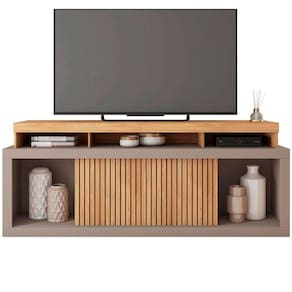 O(a) Rack para TV 75 Polegadas 2 Portas com Ripado Aegon Marrom/Cinza - Caemmun é produzido em MDF e MDP na escala de brilho Fosco, e possui um grau de dificuldade de montagem: Médio.