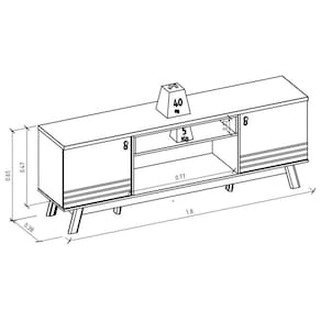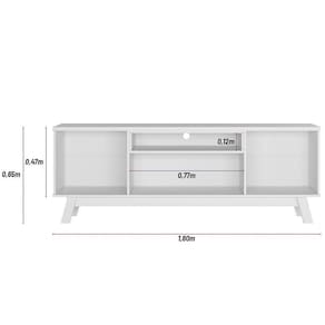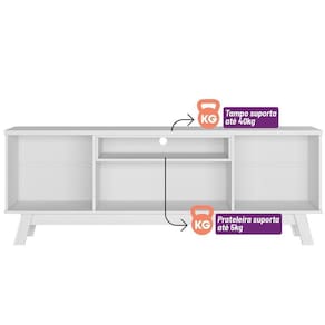 - Espaço máximo para tv no tampo (Largura: 180 cm x Profundidade: 38 cm);