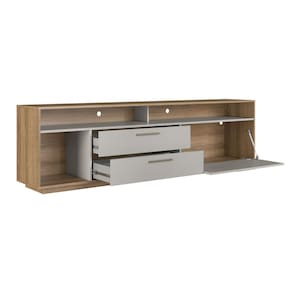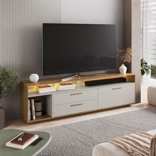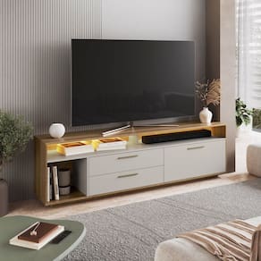 Otimizar espaços é uma das metas da Art In Móveis, por isso criamos o Rack para TV com iluminação led Reims. Este produto foi produzido em excelente material MDP com acabamento Finish Foil fosco. Uma rack moderno e contemporâneo que irá decorar ainda mais a sua sala. Este rack se utiliza de iluminação em led, corrediça telescópica e pistão a gás. Cada nova ideia é uma mistura de criatividade, funcionalidade e muita dedicação com os produtos Art In Móveis Produto Montado: Sim Acabamento: Finish Foil Acabamento da Gaveta: Finish Foil Acabamento da Porta: Finish Foil Acompanha Lâmpada: 01 Ambiente Principal: Sala de Estar codigo_ean: 7899766517746 Complexidade da Montagem: Média: pode ser montado por mais de uma pessoa e/ou necessite de maior conhecimento para montagem Cor: Arenas/Mel Cor da Porta: Branco Cor do Produto: Arenas/Mel Cor Flex: Não Cor Interna: Mel Escala de Brilho: Fosco Escala de Brilho da Gaveta: Fosco Escala de Brilho da Porta: Fosco Espessura do Tampo: 15 mm Gaveta com Chave: Não Ideal para TVs até (Polegadas): 75 Itens Inclusos: 1 Rack, Kit Ferragem e Manual de Montagem Linha ou Coleção: Sala de Estar Manual de Montagem e Instalação: https://product-hub-prd.madeiramadeira.com.br/779989466/documents/6964e155-c5e9-4d2f-8f02-64f9465e013d3163019522517562478850758.pdf Marca: Art in Móveis Material da Gaveta: MDP Material da Porta: MDP Material do Puxador da Gaveta: PVC Material do Puxador da Porta: PVC Material Principal: MDP Modelo de Porta: Porta Lisa Montagem Flex: Não Necessita Montagem: Sim Origem do Produto: Nacional Peso: 41,2 kg Peso Máximo por Gaveta: 5 kg Possui Adega: Não Possui Espelho: Não Possui iluminação: Sim Possui Passa Cabos: Sim Possui Pés: Não Possui Portas: Sim Possui Prateleiras: Não Possui Vidro: Não Quantidade de Gavetas: 02 Gavetas Recomendações de Uso, Manutenção e Limpeza: Para a limpeza do móvel utilizar pano levemente umedecido Sistema de Montagem: Parafusos, cavilhas e minifix Tipo de Corrediça da Gaveta: Metálica Telescópica Tipo de Dobradiça/Corrediça da Porta: Metálica Tipo de Porta: Basculante Tipo de Puxador da Gaveta: Externo Tipo de Puxador da Porta: Externo