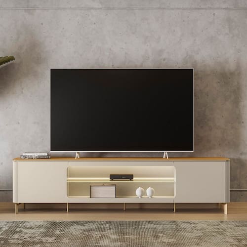 O Rack Santorini é o produto perfeito para deixar o seu ambiente sofisticado e moderno, com detalhes ondulados trazendo mais elegância para o produto. Tampo com detalhe arredondado, Prateleira de vidro, Porta com detalhe arredondado e chanfrado, Pés Metálicos, Tampo flex, Moldura curva revestida canelada. Acabamento: Pintura UV Acabamento da Porta: Pintura UV Acabamento da Prateleira: Vidro Acompanha Lâmpada: Não Altura dos Pés: 11,5 cm Ambiente Principal: Sala de Estar codigo_ean: 7900288133267 Complexidade da Montagem: Média: pode ser montado por mais de uma pessoa e/ou necessite de maior conhecimento para montagem Cor: TAUARI/OFF WHITE FOSCO Cor da Caixa: Off White Cor da Porta: Off White Cor do Produto: Tauari/Off White Fosco Cor Interna: Off White Escala de Brilho: Fosco Escala de Brilho da Porta: Fosco Escala de Brilho da Prateleira: Não Possui Espessura do Tampo: 9 mm Espessura do Vidro: 6 mm Ideal para TVs até (Polegadas): 84 Itens Inclusos: 1 Rack com Led e Manual de Montagem Linha ou Coleção: Santorini Manual de Montagem e Instalação: https://cdn2.madeiramadeira.com.br/atributo/linea-brasil/2878578-6231-17455911134939.pdf Marca: Linea Brasil Material da Porta: MDF Material da Prateleira: Vidro Material dos Pés: Metal Material Principal: MDF/MDP Montagem Flex: Sim Necessita Montagem: Sim Origem do Produto: Nacional Peso: 64,5 kg Peso Máximo por Prateleira: 5 kg Possui Adega: Não Possui Espelho: Não Possui Possui iluminação: Sim Possui Passa Cabos: Sim Possui Pés: 05 Possui Portas: 02 Possui Prateleiras: 01 Possui Vidro: Sim Quantidade de Nichos: 02 Recomendações de Uso, Manutenção e Limpeza: Pano Seco Sapatas Niveladoras: Não Sistema de Montagem: Parafusos, Cavilhas e Minifix Tipo de Dobradiça/Corrediça da Porta: Metálica Tipo de Porta: Abrir Tipo de Puxador da Porta: Embutido