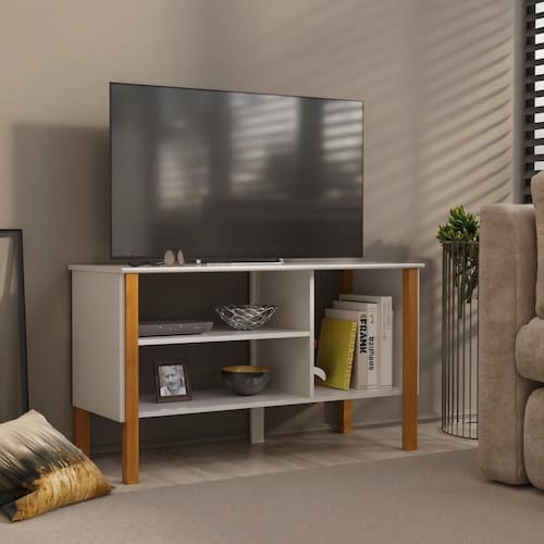 Além disso, os pés em MDPnão apenas proporcionam estabilidade e robustez ao rack, mas também adicionam um toque de sofisticação ao seu design, elevando o visual do ambiente. Ideal para acomodar TV até 40 polegadas, garantindo que você desfrute de seus programas favoritos com conforto. Trazendo praticidade, funcionalidade e beleza em um único móvel. Seja na sala de estar, no quarto ou em qualquer outro ambiente, este rack oferece o espaço de armazenamento necessário para organizar seus itens eletrônicos e decorativos, enquanto adiciona um toque de estilo à sua casa.