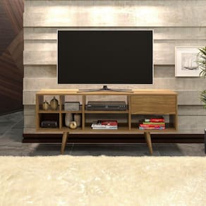 Características: Fabricado em MDP 1 Gaveta 7 Nichos Suporta até 50 Polegadas Pés em madeira de eucalipto Acabamento em pintura UV Capacidade suportada: 36 Kg o tampo e 4 Kg gaveta e nichos