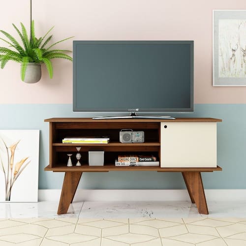 Características: 1 Porta de abrir Para TV de até 50 polegadas Material em MDF 25mm / MDP 15mm Acabamento pintura UV texturizada Pés em MDF