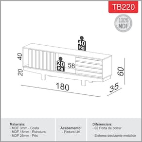 MDFRack 180cm com 2 Portas de Correr TB220 Dalla Costa