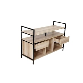 Rack/Buffet alfa possui um desing morderno e prático, cim um ótimo espaço para organizar suasala de estar. Possui também duas gavetas em BP. Estrutura em aço carbono pintado, produto de fácil montagem. Produto Montado: Sim Acabamento: BP Acabamento da Gaveta: BP Acabamento da Prateleira: BP Acabamento dos Pés: Pintura Altura dos Pés: 8 cm Altura Máxima dos Pés: 8.0000 Ambiente Principal: Sala de Estar codigo_ean: 7909903199282 Complexidade da Montagem: Média: pode ser montado por mais de uma pessoa e/ou necessite de maior conhecimento para montagem Cor: Preto/carvalho Montreal Cor do Produto: Preto/Carvalho Montreal Cor Interna: Carvalho Montreal Escala de Brilho: Fosco Escala de Brilho da Gaveta: Fosco Escala de Brilho da Prateleira: Fosco Gaveta com Chave: Não Ideal para TVs até (Polegadas): 50 Itens Inclusos: 1 Rack, Kit Ferragens e Manual de Montagem Manual de Montagem e Instalação: https://product-hub-prd.madeiramadeira.com.br/815441/documents/0619d4b4-b9b4-43be-968c-3617dbe40282lhdobradorackbuffetjul2022.pdf Material da Gaveta: MDP Material da Prateleira: MDP Material dos Pés: Aço Material Principal: Aço Necessita Montagem: Sim Origem do Produto: Nacional Peso: 30 kg Peso Máximo por Gaveta: 2 kg Peso Máximo por Prateleira: 6 kg Possui Espelho: Não Possui iluminação: Não Possui Pés: 04 Possui Portas: Não Possui Prateleiras: Sim Possui Vidro: Não Quantidade de Gavetas: 02 Gavetas Recomendações de Uso, Manutenção e Limpeza: Limpar com pano levemente umedecido. Não usar produtos abrasivos que possam danificar a superfície do móvel. Sapatas Niveladoras: Não Sistema de Montagem: Parafusos, Cavilha e Trapézio Tipo de Corrediça da Gaveta: Metálica Simples Tipo de Puxador da Gaveta: Embutido undefined: 815459