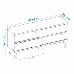 Mesclando o design retro dos pés palito e a modernidade das portas deslizantes a bancada NT 1180 da Notável Móveis vai deixar a sua sala de TV muito mais bonita, conta com quatro nichos espaçosos, espaço para eletrônicos e suporta TV's de até 50" Acabamento: Pintura UV Acabamento da Gaveta: Acabamento da Porta: Pintura UV Acabamento da Prateleira: Pintura UV Acabamento dos Pés: Acompanha Lâmpada: Altura do Espelho: Altura do Espelho 01: Altura do Espelho 02: Altura do Espelho 03: Altura do Espelho 04: Altura do Espelho 05: Altura do Espelho 06: Altura dos Pés: 15.5 Ambiente Principal: Sala de Estar Complexidade da Montagem: Média: pode ser montado por mais de uma pessoa e/ou necessite de maior conhecimento para montagem Cor: Freijó Trend/Off White Cor do Produto: Freijo Trend/Off White Cor Flex: Cor Interna: Freijó Escala de Brilho: Fosco Escala de Brilho da Gaveta: Escala de Brilho da Porta: Brilhante Escala de Brilho da Prateleira: Brilhante Espessura do Espelho: Espessura do Vidro: Fita Integrada: Formato do Espelho: Gaveta com Chave: Ideal para TVs até (Polegadas): 50 Informações Complementares: Itens Inclusos: 1 Rack, Kit Ferragens e Manual de Montagem Largura do Espelho: Largura do Espelho 01: Largura do Espelho 02: Largura do Espelho 03: Largura do Espelho 04: Largura do Espelho 05: Largura do Espelho 06: Linha ou Coleção: 2022 Manual de Especificação Técnica: Manual de Montagem e Instalação: https://cdn2.madeiramadeira.com.br/atributo/moveis-notavel/1040096-bancada-nt1180-manual-de-montagem.pdf Material da Gaveta: Material da Porta: MDP Material da Prateleira: MDP Material do Puxador da Gaveta: Material do Puxador da Porta: Material dos Pés: PVC Material Principal: MDP Montagem Flex: Necessita Montagem: Sim Origem do Produto: Nacional Peso: 26.11 Peso Máximo por Gaveta: Peso Máximo por Prateleira: 5 Possui Espelho: Não Possui Possui iluminação: Não Possui Pés: 04 Possui Portas: 02 Possui Prateleiras: 01 Possui Vidro: Não Quantidade de Nichos: Recomendações de Uso, Manutenção e Limpeza: Para maior durabilidade, recomenda-se que a limpeza dos móveis seja feita da seguinte forma: Nas partes externas (portas, laterais e frente de gaveta) e internas, a limpeza deverá ser feita com pano limpo e levemente umedecido em água e sabão neutro. Em seguida, deverá ser passado um pano limpo e seco. Rodízio com Trava: Sapatas Niveladoras: Não Sistema de Montagem: Parafuso e mini fix Tipo de Corrediça da Gaveta: Tipo de Dobradiça/Corrediça da Porta: Tipo de Fixação do Espelho: Tipo de Madeira Maciça: Tipo de Madeira Maciça da Gaveta: Tipo de Madeira Maciça da Porta: Tipo de Madeira Maciça da Prateleira: Tipo de Madeira Maciça do Puxador da Gaveta: Tipo de Madeira Maciça do Puxador da Porta: Tipo de Madeira Maciça dos Pés: Tipo de Porta: Correr Tipo de Puxador da Gaveta: Tipo de Puxador da Porta: Embutido