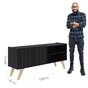 O rack Space é a solução perfeita para quem possui ambientes compactos e não abre mão de estilo e personalidade. Com 1,36 m de largura, duas portas e dois nichos você poderá guardar livros e eletrônicos em um espaço pensado na funcionalidade para sua casa. Os pés em madeira maciça estilo retro e os frisos proporcionam autenticidade e valorizam ainda mais os ambientes. Suporta TV de até 50 polegadas.
