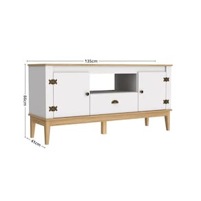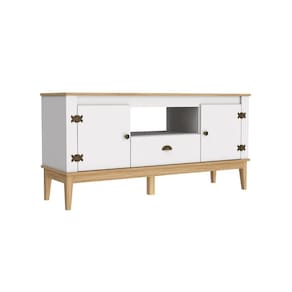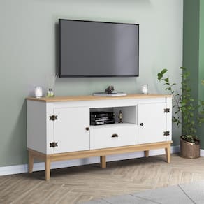 Rack para TV até 55 Polegadas 2 Portas 1 Gaveta com Pés de Madeira Colonial Movelbento - Branco | Cinamomo