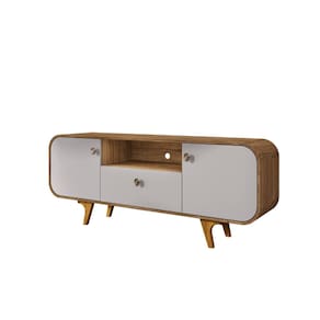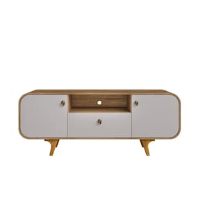 Rack para TV Até 55 Polegadas 2 Portas 1 Gaveta com Pés de Madeira Maciça Noronha Bechara - Cinza