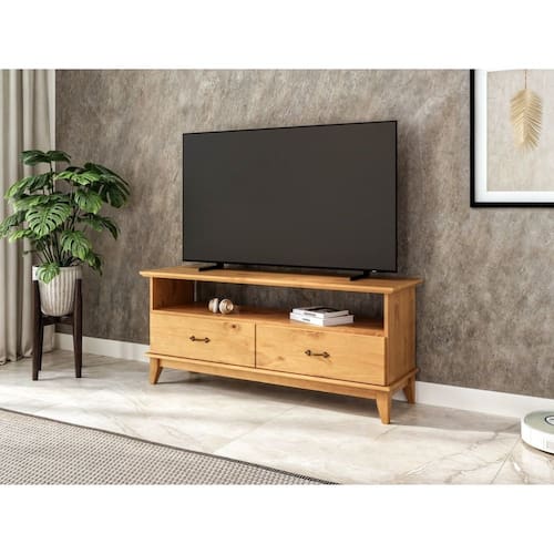 Os produtos da linha bella vão proporcionar ao seu ambiente aquele toque especial de requinte e sofisticação, deixando-os mais aconchegantes. Indispensável para a sua casa, qualidade com a elegância que vão fazer a diferença e valorizar a sua sala. Acabamento: Pintura UV Acabamento da Gaveta: Pintura UV Acabamento da Prateleira: Pintura UV Ambiente Principal: Sala de Estar Complexidade da Montagem: Alta: deve ser montado por um montador especializado Cor: Carvalho Cor do Produto: Carvalho Escala de Brilho: Fosco Escala de Brilho da Prateleira: Fosco Gaveta com Chave: Não Ideal para TVs até (Polegadas): 55 Itens Inclusos: 01 Rack Manual de Montagem e Instalação: https://product-hub-prd.madeiramadeira.com.br/905517/documents/13319793-2226-4272-8f39-5fa31073254e19162161040rack1400novo.pdf Material da Gaveta: Madeira Maciça Material da Prateleira: Madeira Maciça Material dos Pés: Madeira Maciça Material Principal: Madeira Maciça Necessita Montagem: Sim Origem do Produto: Nacional Peso: 29,1 kg Peso Máximo por Gaveta: 3 kg Peso Máximo por Prateleira: 10 kg Possui Espelho: Não Possui Possui iluminação: Não Possui Pés: 04 Possui Portas: Não Possui Prateleiras: 01 Recomendações de Uso, Manutenção e Limpeza: Limpar com um pano seco. Não usar produtos que contenham solventes, abrasivos ou amônia. Evitar a exposição à luz solar e umidade excessiva. Sapatas Niveladoras: Não Sistema de Montagem: Parafusos, cavilhas, cantoneiras, etc. Tipo de Corrediça da Gaveta: Metálica Telescópica Tipo de Madeira Maciça: Pinus Tipo de Madeira Maciça da Gaveta: Pinus Tipo de Madeira Maciça da Prateleira: Pinus Tipo de Madeira Maciça dos Pés: Pinus Tipo de Puxador da Gaveta: Externo