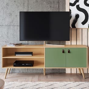 O(a) Rack para TV Até 55 Polegadas Havai 2 Portas Carvalho/Verde - Loja é produzido em MDP na escala de brilho Fosco, e possui um grau de dificuldade de montagem: Médio.