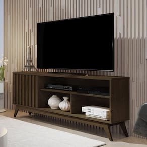 Com espaço para TVs de até 55 Polegadas o Rack Retrô Malbec. Móvel compacto e elegante, com 3 espaços para organizar seus equipamentos eletrônicos e uma porta para armazenar seus objetos pessoais o Rack Retrô Malbec é uma ótima opção para seu ambiente. Acabamento: Impressão Acabamento da Gaveta: Acabamento da Porta: Impressão Acabamento da Prateleira: Impressão Acabamento dos Pés: Acompanha Lâmpada: Altura do Espelho: Altura do Espelho 01: Altura do Espelho 02: Altura do Espelho 03: Altura do Espelho 04: Altura do Espelho 05: Altura do Espelho 06: Altura dos Pés: Ambiente Principal: Sala de Estar Complexidade da Montagem: Baixa: pode ser montado por uma pessoa sozinha Cor: Cedro Cor do Produto: Cedro Cor Flex: Cor Interna: Cedro Escala de Brilho: Semi-Brilho Escala de Brilho da Gaveta: Escala de Brilho da Porta: Semi-Brilho Escala de Brilho da Prateleira: Semi-Brilho Espessura do Espelho: Espessura do Vidro: Fita Integrada: Formato do Espelho: Gaveta com Chave: Ideal para TVs até (Polegadas): 55 Informações Complementares: Itens Inclusos: 1 Rack, Kit Ferragens e Manual de Montagem Largura do Espelho: Largura do Espelho 01: Largura do Espelho 02: Largura do Espelho 03: Largura do Espelho 04: Largura do Espelho 05: Largura do Espelho 06: Linha ou Coleção: Manual de Especificação Técnica: Manual de Montagem e Instalação: https://cdn2.madeiramadeira.com.br/atributo/giga-moveis/1180396-rack-malbec-wood-ripado.pdf Material da Gaveta: Material da Porta: MDF/MDP Material da Prateleira: MDP Material do Puxador da Gaveta: Material do Puxador da Porta: Material dos Pés: Madeira Maciça Material Principal: MDP Montagem Flex: Necessita Montagem: Sim Origem do Produto: Nacional Peso: 25.3 Peso Máximo por Gaveta: Peso Máximo por Prateleira: 5 Possui Espelho: Não Possui Possui iluminação: Não Possui Pés: 04 Possui Portas: 01 Possui Prateleiras: 01 Possui Vidro: Quantidade de Nichos: Recomendações de Uso, Manutenção e Limpeza: Limpe com pano levemente umedecido em água. Nunca utilize produto químico. Rodízio com Trava: Sapatas Niveladoras: Não Sistema de Montagem: Parafusos, Cavilhas e Girofix Tipo de Corrediça da Gaveta: Tipo de Dobradiça/Corrediça da Porta: Tipo de Fixação do Espelho: Tipo de Madeira Maciça: Tipo de Madeira Maciça da Gaveta: Tipo de Madeira Maciça da Porta: Tipo de Madeira Maciça da Prateleira: Tipo de Madeira Maciça do Puxador da Gaveta: Tipo de Madeira Maciça do Puxador da Porta: Tipo de Madeira Maciça dos Pés: Eucalipto Tipo de Porta: Tipo de Puxador da Gaveta: Tipo de Puxador da Porta: Embutido Marca: Giga Móveis