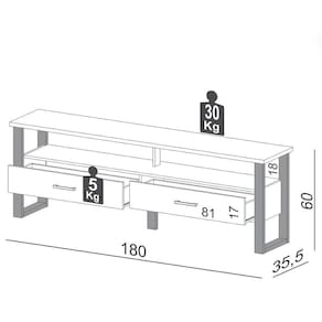 Peso Suportado: 30 Kg no tampo e 5 Kg na gaveta.