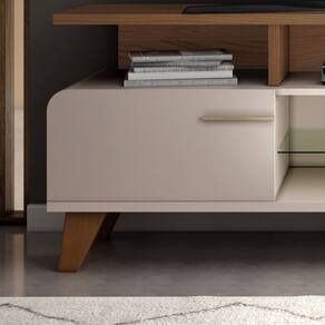Caracter?sticas: Ideal para TV at? 60; 2 Portas basculantes com pist?o a g?s; 5 P?s em madeira; Prateleira de Vidro 6mm; Puxadores em Alum?nio; Peso suportado: 40 Kg Distribu?dos. Estrutura em MDF/MDP