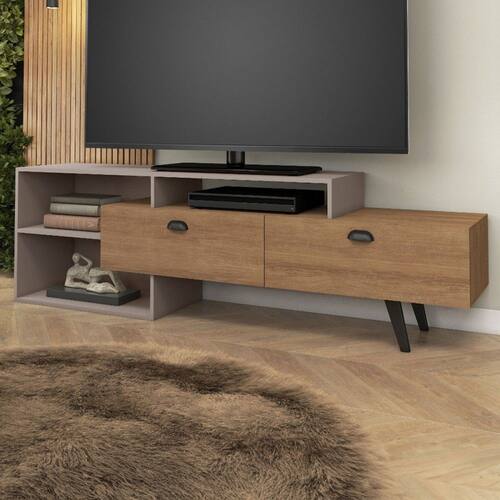 O(a) Rack Sunset 180cm para TV 60" 2 Portas Basculantes C/Pes - Marrom/Marrom Claro é produzido em MDP na escala de brilho Fosco, e possui um grau de dificuldade de montagem: Médio.