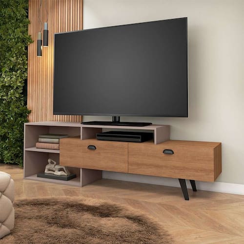 que tal o rack sunset?com o rack sunset você ganha um ambiente charmoso e organização impecável, assim seu lar sempre estará preparado para receber convidados ou embalar momentos de descanso de forma aconchegante. além de ser perfeito para que você e sua família relaxem juntos, ele ainda tem espaço ideal para organizar aparelhos eletrônicos, como modem, videogame e, claro, a televisão, enquanto itens de decoração ficam expostos para dar um toque de bom gosto pessoal. a estrutura feita com material de boa durabilidade vai ser perfeita para garantir que a peça marque presença por bastante tempo na décor, enquanto o design elegante combinado cooloração versátil deixa o móvel ainda mais bonito e preparado para deixar a rotina especial do jeito que você sempre quis ;)