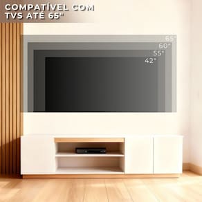 Capacidade: Suporta com segurança TVs de até 65 polegadas. Produto Montado: Sim Acabamento: BP Acabamento da Porta: BP Acabamento da Prateleira: BP Ambiente Principal: Sala de Estar codigo_ean: 7900288349569 Complexidade da Montagem: Média: pode ser montado por mais de uma pessoa e/ou necessite de maior conhecimento para montagem Cor: Branco/Amadeirado Cor da Porta: Branco Cor do Produto: Branco/Amadeirado Escala de Brilho: Semi-Fosco Escala de Brilho da Porta: Semi-Brilho Escala de Brilho da Prateleira: Semi-Fosco Espessura do Tampo: 12 mm Ideal para TVs até (Polegadas): 65 Itens Inclusos: 1 Rack, Manual de Montagem e Kit Ferragens Linha ou Coleção: Rack Marca: BYHOUSE Material da Porta: MDF/MDP Material da Prateleira: MDF/MDP Material dos Pés: MDF Material Principal: MDF/MDP Necessita Montagem: Sim Origem do Produto: Nacional Peso: 18,2 kg Peso Máximo por Prateleira: 10 kg Possui Espelho: Não Possui iluminação: Não Possui Passa Cabos: Sim Possui Pés: Rodapé Possui Prateleiras: Sim Possui Vidro: Não Recomendações de Uso, Manutenção e Limpeza: Pano com agua Sapatas Niveladoras: Não Sistema de Montagem: Acompanha manual Tipo de Dobradiça/Corrediça da Porta: Metálica Tipo de Porta: Abrir Tipo de Puxador da Porta: Externo Marca: Não Informado