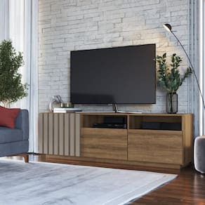 O rack RN180 é produzido em MDP 15mm, possui 3 portas, sendo que uma delas possui detalhe ripado que torna o móvel ainda mais elegante e diferenciado. Este móvel conta com 2 nichos para você colocar seus eletrônicos e pertences e com amplo espaço interno nas portas e no tampo. Acabamento: Finish Foil Acabamento da Porta: Finish Foil Ambiente Principal: Sala de Estar Complexidade da Montagem: Média: pode ser montado por mais de uma pessoa e/ou necessite de maior conhecimento para montagem Cor: Mel/Fumê Cor do Produto: Mel/Fumê Cor Flex: Não Cor Interna: Mel Escala de Brilho: Fosco Escala de Brilho da Porta: Fosco Ideal para TVs até (Polegadas): 65 Itens Inclusos: 1 Rack, 1 Kit Ferragens e 1 Manual de Montagem Linha ou Coleção: Sala Manual de Montagem e Instalação: https://cdn2.madeiramadeira.com.br/atributo/prodecor-moveis/1504381-7898970136781-6-manual-rn180-11-09.pdf Material da Porta: MDP Material Principal: MDP Montagem Flex: Não Necessita Montagem: Sim Origem do Produto: Nacional Peso: 35 Possui Adega: Não Possui Espelho: Não Possui Possui iluminação: Não Possui Pés: Não Possui Portas: 03 Possui Prateleiras: Não Possui Vidro: Não Quantidade de Nichos: 02 Recomendações de Uso, Manutenção e Limpeza: Para a limpeza do móvel utilizar pano levemente umedecido Sapatas Niveladoras: Não Sistema de Montagem: Parafusos, Cavilhas Tipo de Dobradiça/Corrediça da Porta: Metálica Tipo de Porta: Misto (Bater e Basculante) Tipo de Puxador da Porta: Embutido Tipo de Rack: Rack Baixo Marca: Prodecor Ean: 7909903405826
