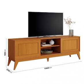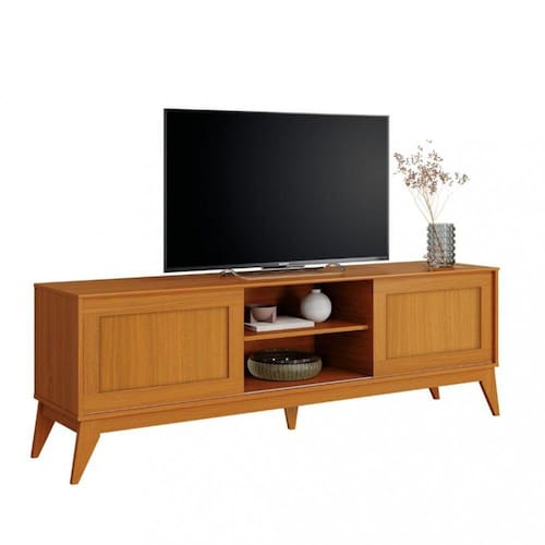 Características: Estrutura em MDP Tampo em MDF 2 Portas deslizantes Trilhos em ABS 1 Prateleira Pés em MDF Suporta TVs até 65 Polegadas