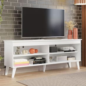 Ideal para TV de até de 65 polegadas, este rack é perfeito para organizar seus aparelhos eletrônicos e itens decorativos com estilo e praticidade, pois conta com quatro nichos de diferentes tamanhos.