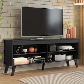 Ideal para TV de até de 65 polegadas, este rack é perfeito para organizar seus aparelhos eletrônicos e itens decorativos com estilo e praticidade, pois conta com quatro nichos de diferentes tamanhos.