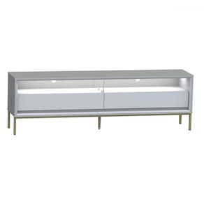 Rack para TV Até 65 Polegadas Fusion 2 Gavetas com Led Off White/Banco Acetinado - Olivar Móveis - Rack para TV com LED