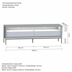 - Medidas do Rack (A x L x P): 56 X 180 X 38,8 cm