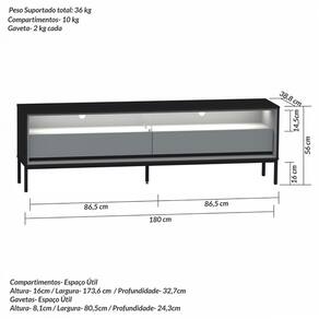 - Medidas do Rack (A x L x P): 56 X 180 X 38,8 cm