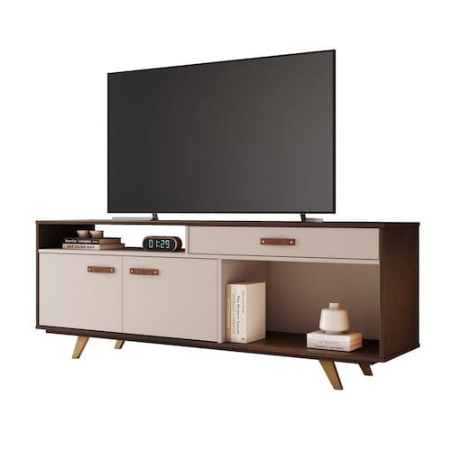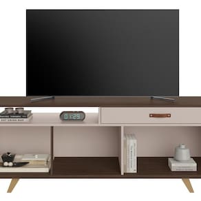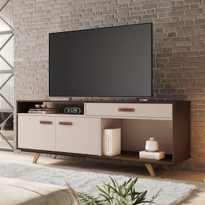 Dimensões:Altura: 66,5 cmLargura: 160 cmProfundidade: 38.5 cmCaracterísticas:ATENÇÃO PRODUTO EM MDP:*100% MDP*Portas com dobradiça de pressão* Gaveta com corrediça telescópica*Pés em ABS* Puxadores em couro*Espaço para TV: 1600mm x Livre (LxA)*Recomenda-se TV até 65Peso do Produto: 35,00 kg