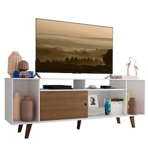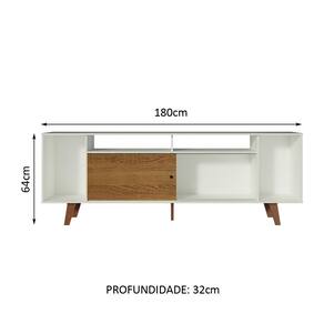 O acabamento do rack é branco. Os pés e a porta são no padrão amadeirado Rustic. O processo é feito em Poliéster Protetor com 7 camadas, detalhe que confere mais durabilidade e qualidade aos produtos. Além disso, é ecológico, isento de vapores prejudiciais à atmosfera.