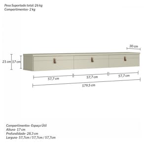 - Medidas do Rack (A x L x P): 21 X 179,5 X 30 Cm