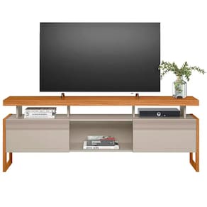 Marca: Linea Brasil Modelo: Esmeralda Tipo: Rack Ideal para TVs ate: 70 Quantidade de portas: 2 portas Material da estrutura: MDP e MDF Material das portas: MDP e MDF Espelho: Nao Prateleiras em vidro: Nao Nichos: Sim Pes: Sim Material dos pes: MDF Peso maximo suportado: 45 kg no tampo Altura: 66 cm Largura: 180 cm Profundidade: 36 cm Peso: 29,80 kg Codigo de barras: Jatoba/Off White: 7898421201990 | Nature/Off White: 7898488219341 Origem: Nacional Garantia: 03 meses Conteudo da embalagem: 01 Rack e manual de instrucoes