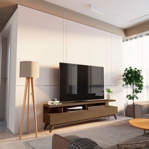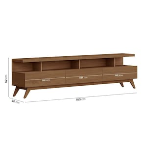 O Rack Yucca combina elegância e versatilidade em um só móvel. Com estrutura em MDF, tampo de 40 mm, pés em madeira maciça e acabamento em pintura UV, é resistente e sofisticado. Suporta TVs de até 72”, possui gavetas com corrediças telescópicas e pode ser utilizado com ou sem painel, suspenso ou com pés. O móvel ideal para transformar sua sala com design contemporâneo e funcionalidade. Produto Montado: Sim Acabamento: Pintura UV Acabamento da Gaveta: Impressão Acabamento dos Pés: Verniz Altura dos Pés: 20 cm Altura Máxima dos Pés: 20.0000 Ambiente Principal: Sala de Estar codigo_ean: 7900288230843 Complexidade da Montagem: Média: pode ser montado por mais de uma pessoa e/ou necessite de maior conhecimento para montagem Cor: Cedro Cor do Produto: Cedro Cor Interna: Cedro Escala de Brilho: Semi-Brilho Escala de Brilho da Gaveta: Semi-Brilho Espessura do Tampo: 42 mm Estilo do Pé: Retrô de Madeira Gaveta com Chave: Não Ideal para TVs até (Polegadas): 72 Itens Inclusos: 1 Rack, Manual de Montagem e Kit Ferragens Linha ou Coleção: Yucca Manual de Montagem e Instalação: https://product-hub-prd.madeiramadeira.com.br/380550547/documents/dd1c85b8-bd13-4fa4-a863-e050ec96cf463213701600517581435347943.pdf Marca: CabeCasa MadeiraMadeira Material da Gaveta: MDF Material dos Pés: Madeira Maciça Material Principal: MDF Necessita Montagem: Sim Origem do Produto: Nacional Peso: 49 kg Peso Máximo por Gaveta: 5 kg Possui Espelho: Não Possui iluminação: Não Possui Passa Cabos: Sim Possui Pés: 04 Possui Portas: Não Possui Prateleiras: Não Possui Vidro: Não Quantidade de Gavetas: 03 Gavetas Recomendações de Uso, Manutenção e Limpeza: A limpeza deve ser feita com pano macio, levemente umedecido com água e sabão neutro. Em seguida, passe um pano seco para evitar o acúmulo de umidade. Nunca utilize produtos abrasivos, esponjas de aço, alvejantes, álcool em excesso ou solventes, pois esses produtos podem agredir o acabamento e comprometer sua aparência. Sapatas Niveladoras: Não Sistema de Montagem: Parafusos, cavilhas e minifix Tipo de Corrediça da Gaveta: Metálica Telescópica Tipo de Madeira Maciça dos Pés: Eucalipto Tipo de Puxador da Gaveta: Embutido