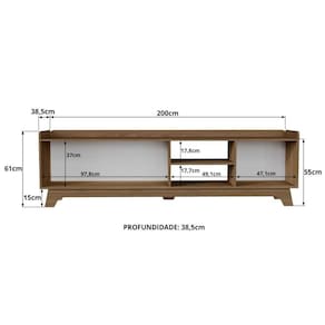 Com 200cm de largura, ele suporta TVs de até 75 polegadas, proporcionando uma experiência de entretenimento completa. Suas 3 portas espaçosas permitem armazenar objetos, eletrônicos e acessórios de maneira organizada e discreta. Além disso, conta com nichos centrais que oferecem praticidade para acomodar aparelhos como consoles, decodificadores e itens decorativos.