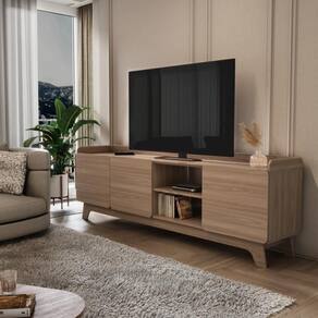 Com 200cm de largura, ele suporta TVs de até 75 polegadas, proporcionando uma experiência de entretenimento completa. Suas 3 portas espaçosas permitem armazenar objetos, eletrônicos e acessórios de maneira organizada e discreta. Além disso, conta com nichos centrais que oferecem praticidade para acomodar aparelhos como consoles, decodificadores e itens decorativos.