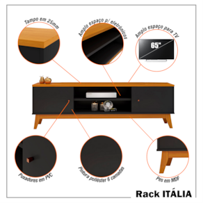 A ViaNossa está sempre buscando inovar e surpreender você em cada detalhe, com moveis autênticos e fabricados com a mais alta qualidade. Apresentamos nosso mais novo lançamento Rack Itália para TV de até 75 polegadas com tampo em MDP de 25mm, pé e travessa em MDF, 2 portas, 1 prateleira, 2 nichos para dispor de decoração, design moderno compatível com qualquer ambiente deixando ainda mais seu espaço organizado e aconchegante para desfrutar de momentos especiais com sua família.